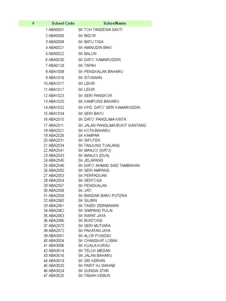 TIADA Jenis Sekolah. JBC8001 Lokasi Sekolah. Senarai ini mungkin tidak lengkap berikutan dengan pembinaan sekolah baru.